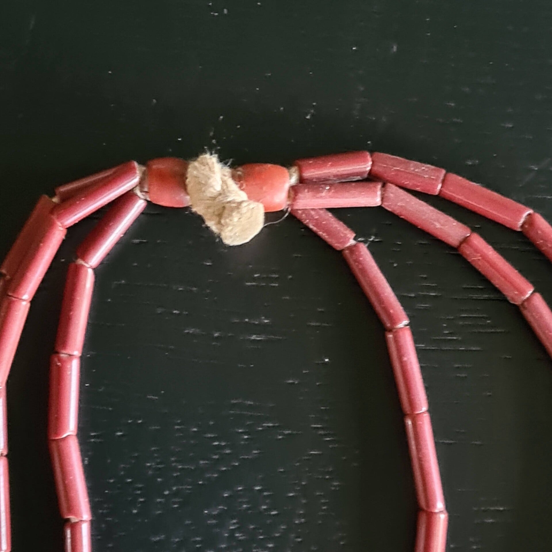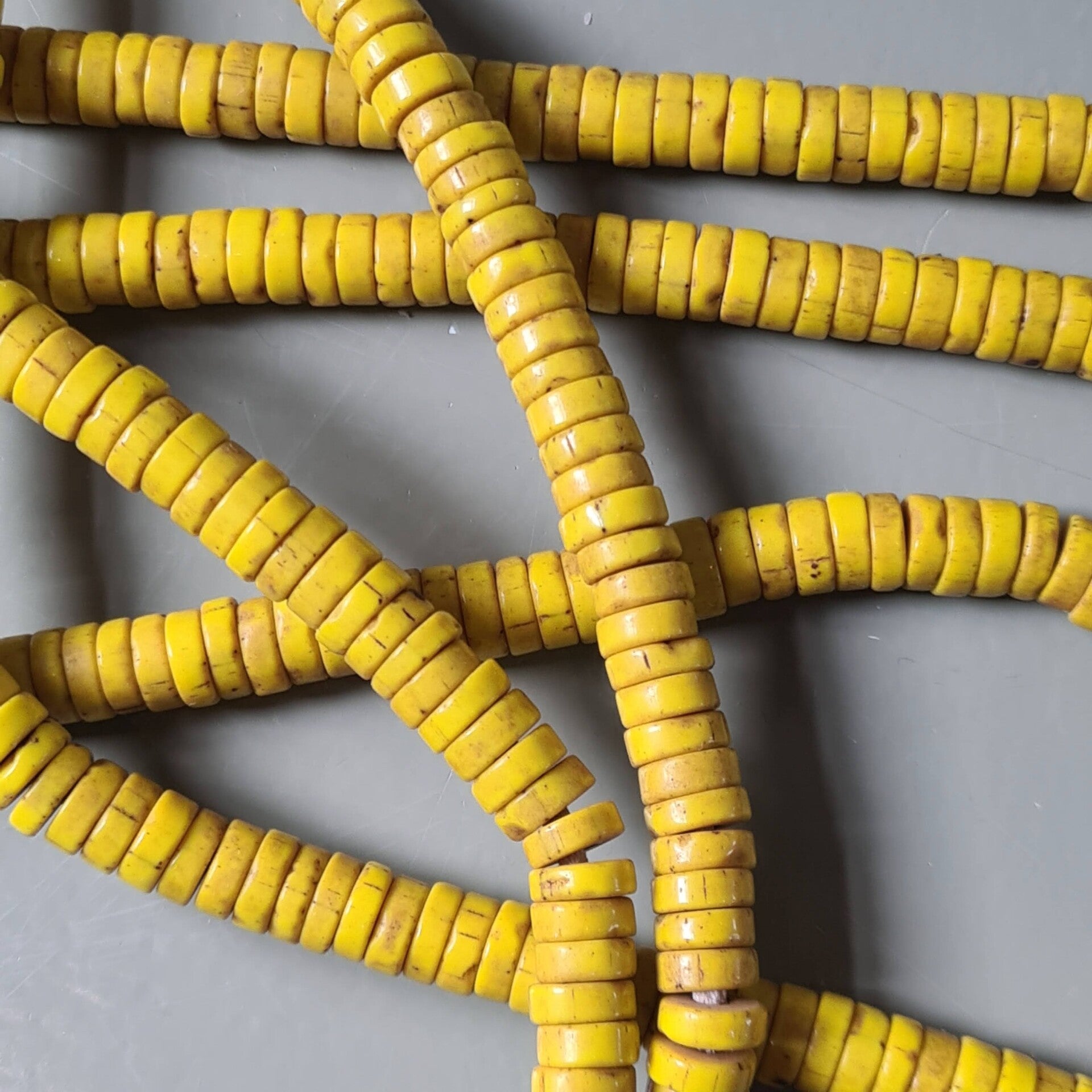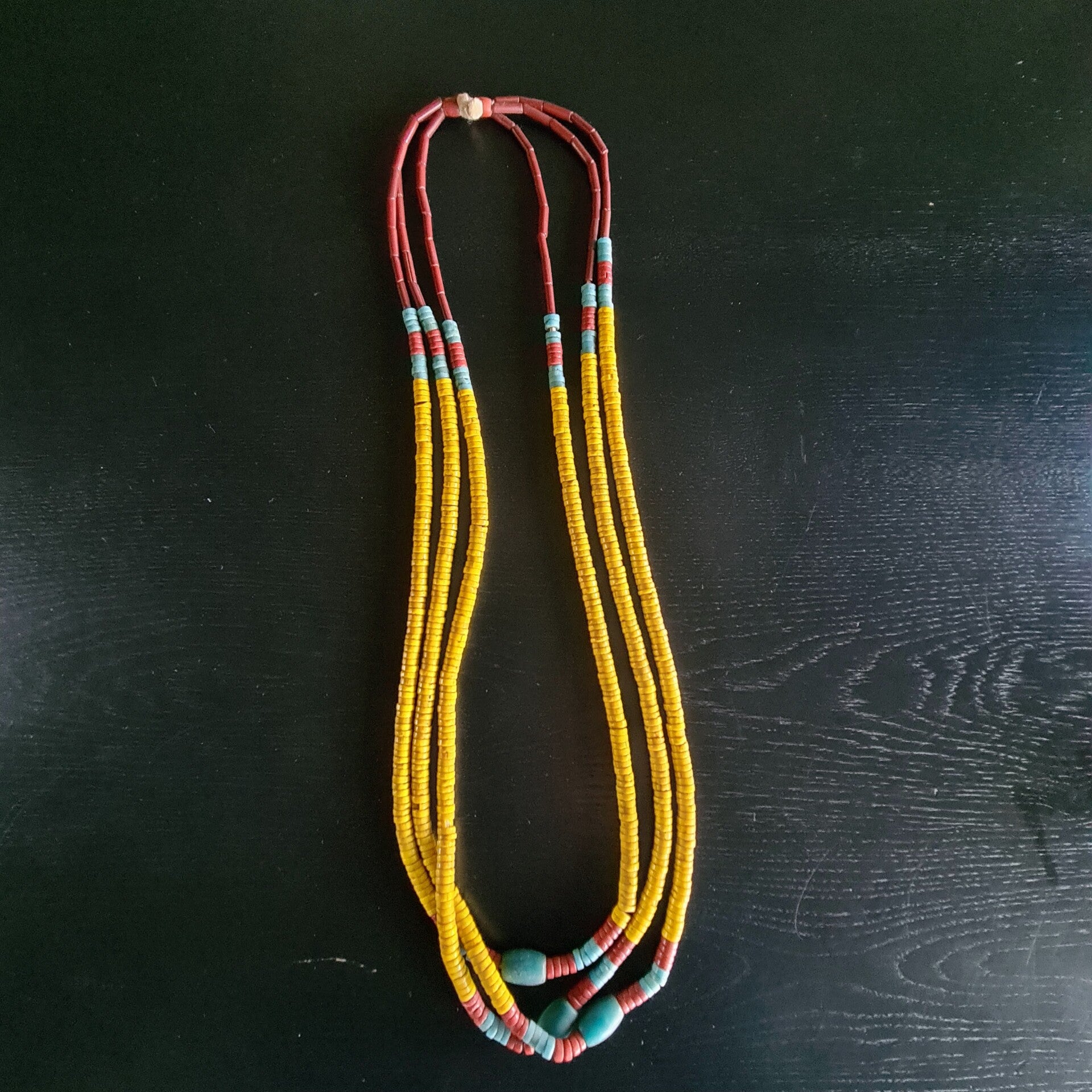 A three-strand Antique Naga Tribal glass beads necklace, Yellow