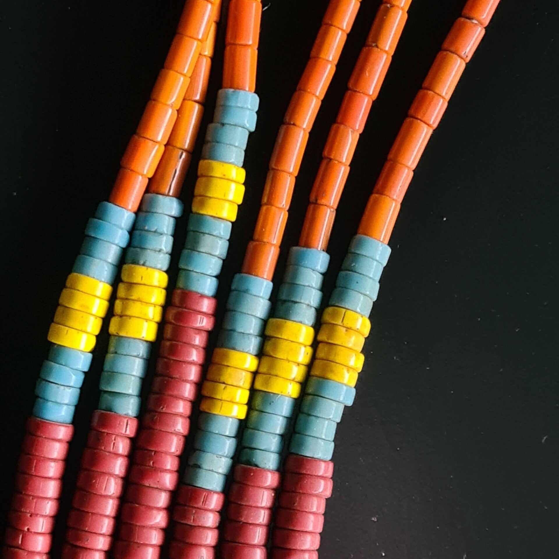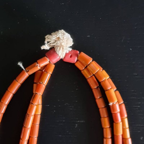 A three-strand Antique Naga Tribal glass beads necklace, Red