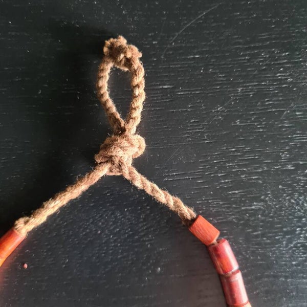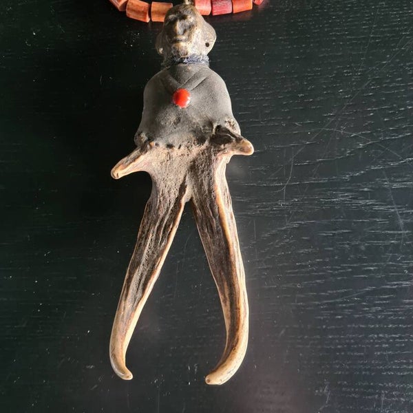Authentic vintage Konyak Nagaland Tribal Deer Bone Amulet Necklace with a Bronze head and black beads