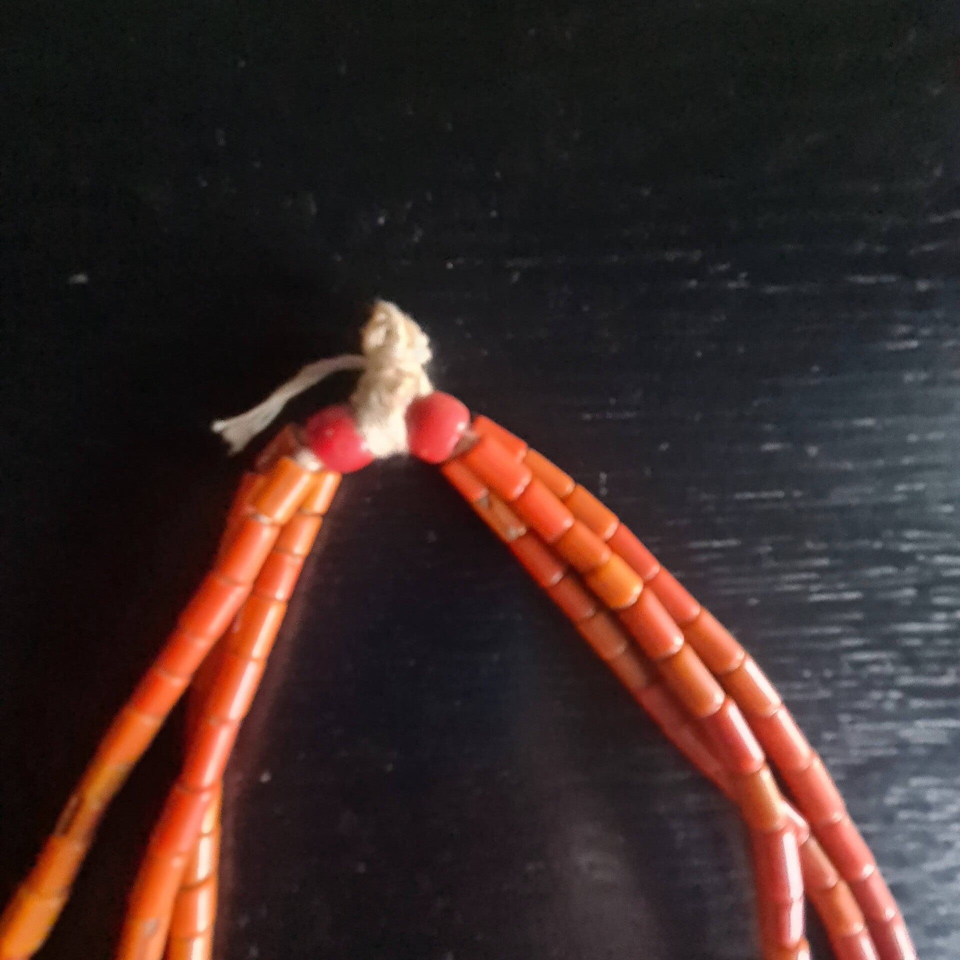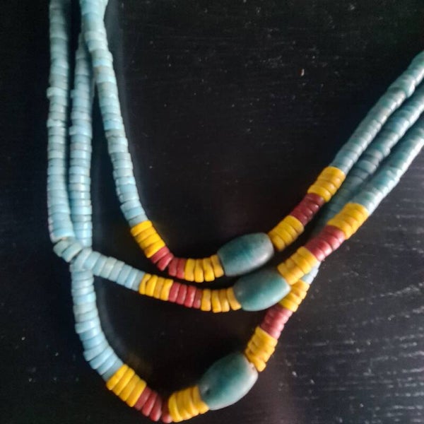 A three-strand Antique Naga Tribal glass beads necklace, Blue